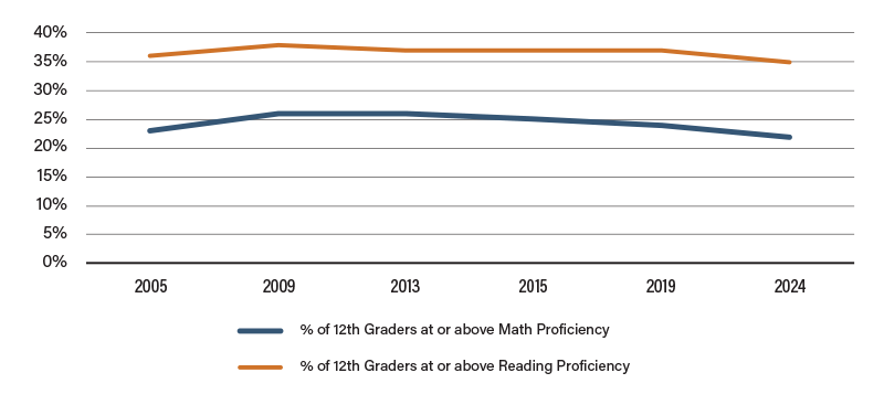 Foundational skills are what make career retooling possible without starting over. With strong underlying reading and math abilities, workers can pivot more quickly, using fewer resources to meet shifting market demands. But the reality is grim: only 35% of U.S. twelfth graders demonstrate at least proficiency in reading and just 22% reach that level in math, according to the National Assessment of Educational Progress. Without these basics, many workers will struggle not only to retrain for new careers, but also to perform in a world where even simple tasks—like crafting effective prompts for AI tools—demand critical thinking and comprehension. The gap in foundational education is, in effect, a gap in the future workforce.
